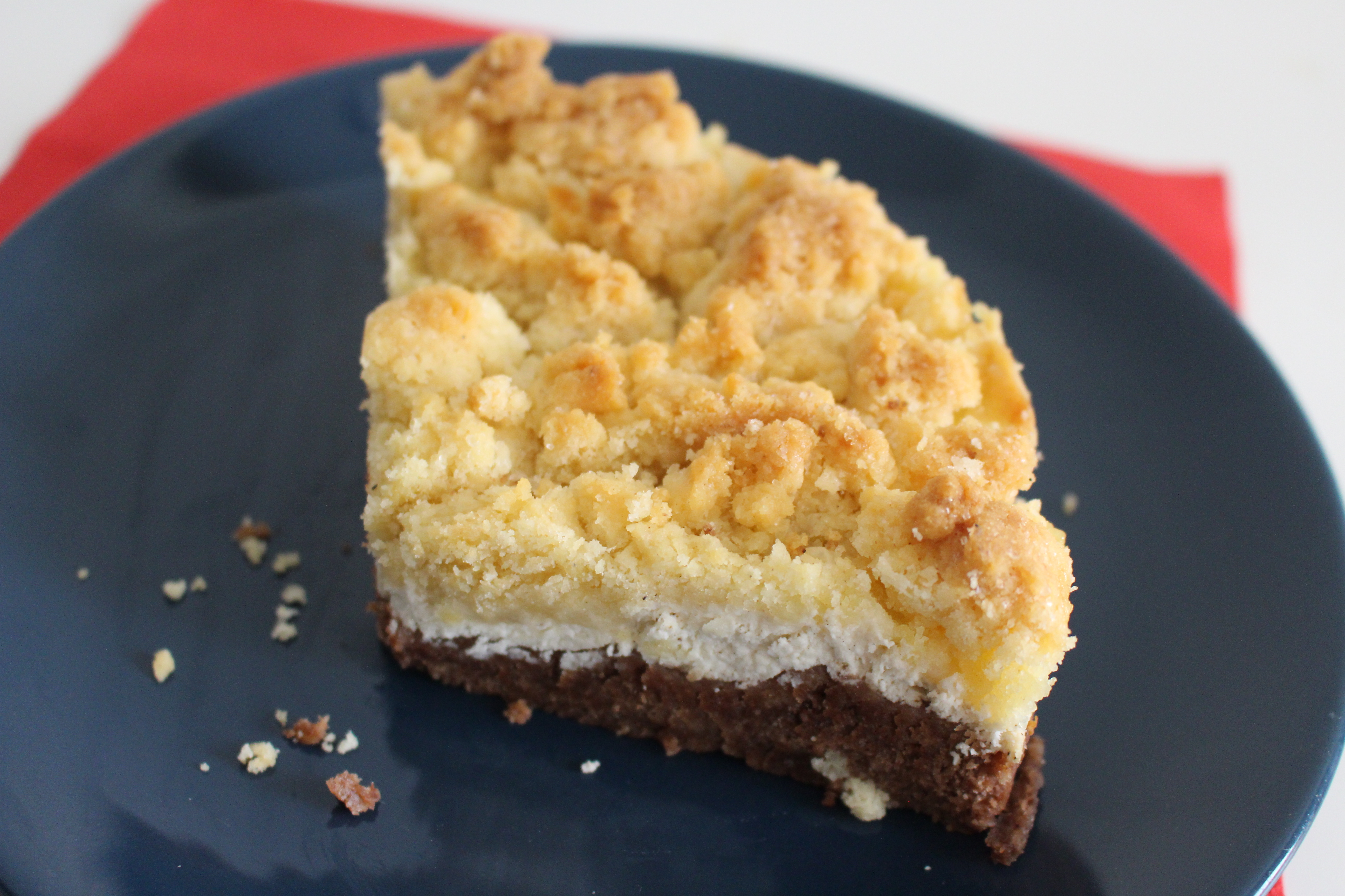 Těsto rozdělíme na dvě poloviny a do jedné přidáme kakao a promícháme. Na dno formy dáme kakaové těsto, na něj nalijeme tvaroh smíchaný s cukrem a zbylé těsto nadrobíme na tvaroh.